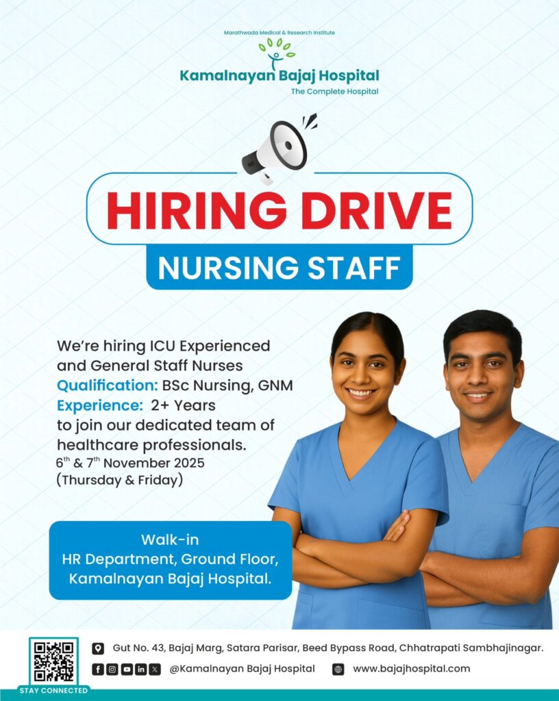 Kamalnayan Bajaj Hospital (KBH) is a leading integrated private healthcare provider in the region, providing comprehensive services from primary to tertiary care.At KBH, we are constantly looking for outstanding healthcare and non-healthcare professionals of diverse background, skills and experiences to join us in delivering the highest level of medical and service excellence in our patient care.